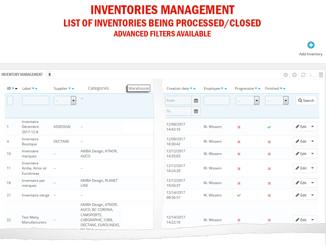 - Multi-users (each employee manages his own inventories).
