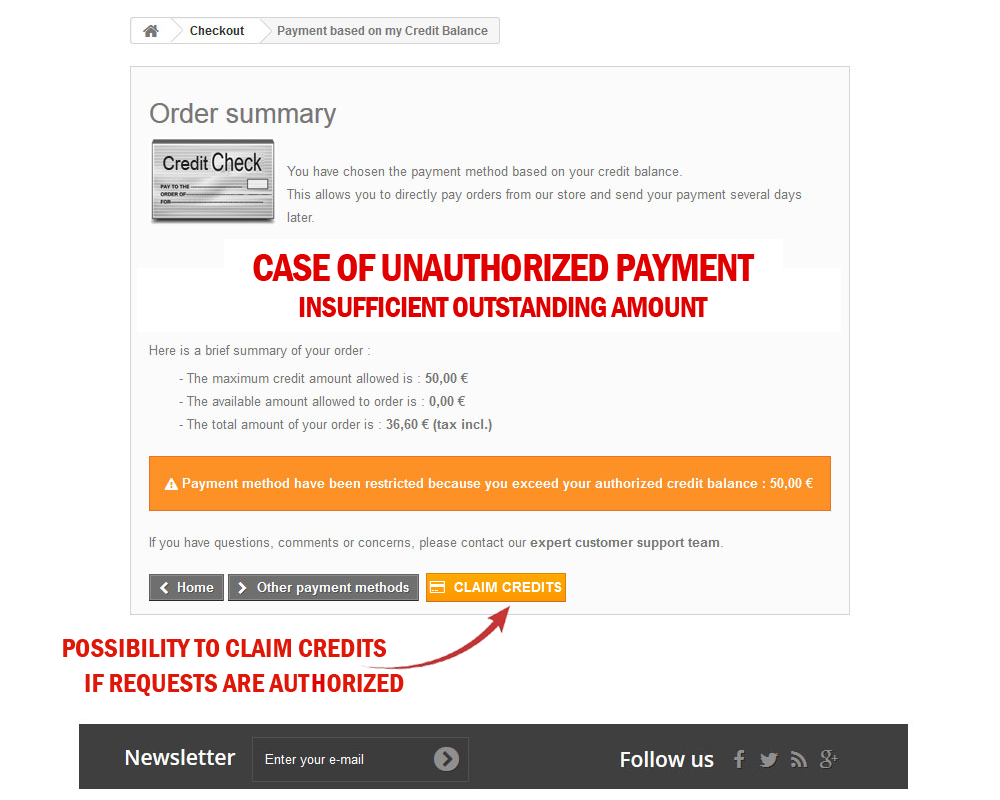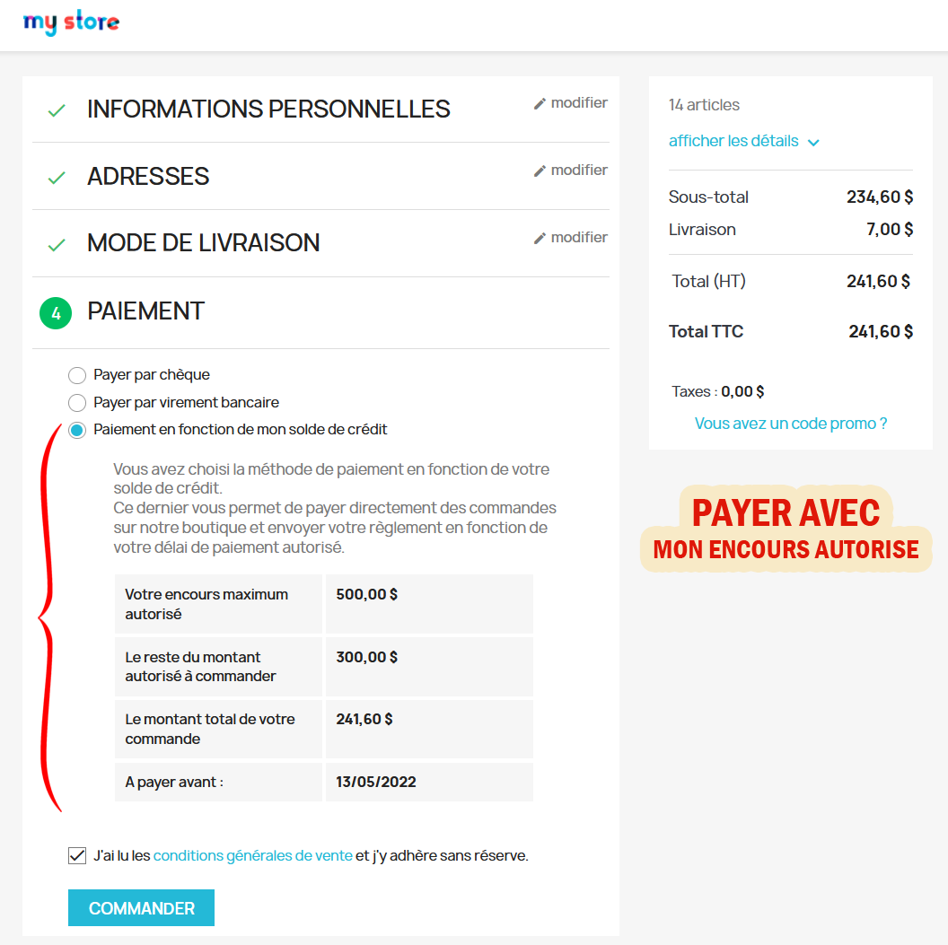 This add-on enables customers to pay for their purchases directly on your shop using their amount current outstanding verification system, very useful to: