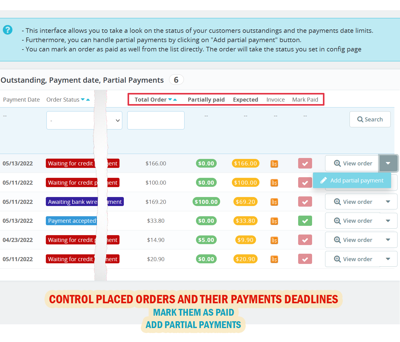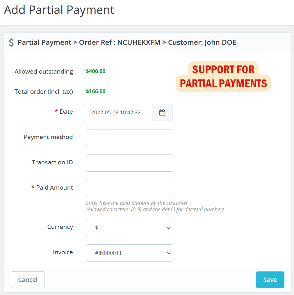 - Manage partial payments of your regular customers.